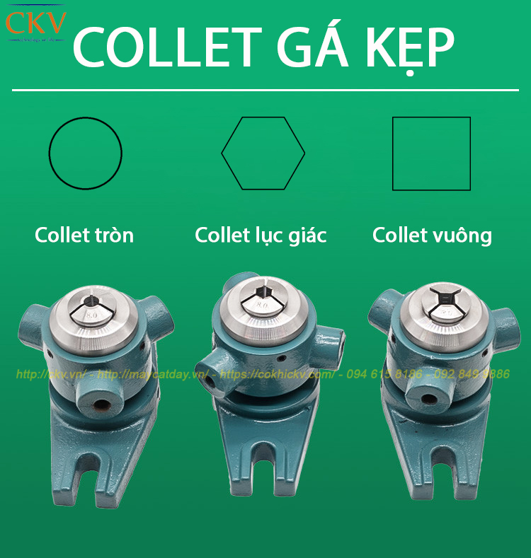 Kích thước collet: Có 3 loại collet là collet tròn, collet vuông và collet lục giác.