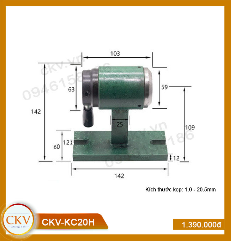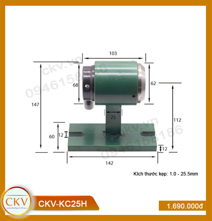 Mã CKV-KC25H: Cỡ kẹp: 1.0-25.5mm